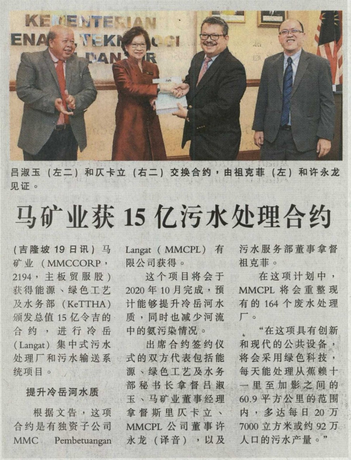 MMC, KeTTHA Sign Agreement For Langat Sewerage Project